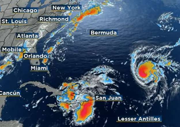 An interesting situation is brewing in the Caribbean, which might have impacts on the East Coast next week, as seen below. Hurricane Humberto (lower right) is expected to track a bit further to the NW then swing to the NE, and out to the ocean.